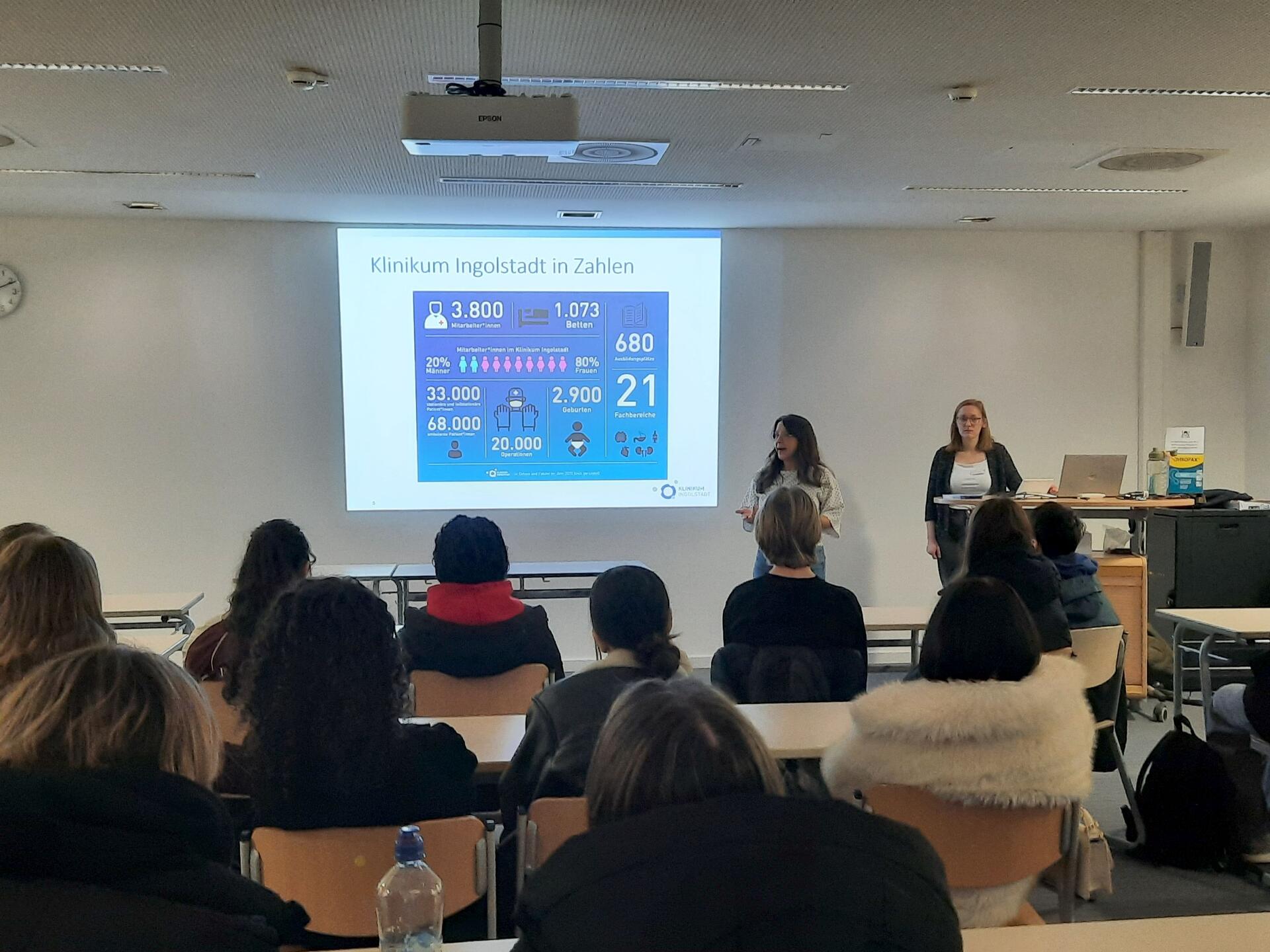 Einen spannenden Einblick in verschiedene Gesundheitsberufe erhielten die Schülerinnen und Schüler der Klassen 9a und 9c beim Besuch des Klinikums Ingolstadt. Zu Beginn wurden sie im Berufsbildungszentrum (BBIZ) des Klinikums begrüßt, wo ihnen in einem informativen Vortrag die zahlreichen Ausbildungsmöglichkeiten vorgestellt wurden. Dabei wurde mit einigen Vorurteilen zu Pflegeberufen „aufgeräumt“, z. B. zu den Verdienstmöglichkeiten.