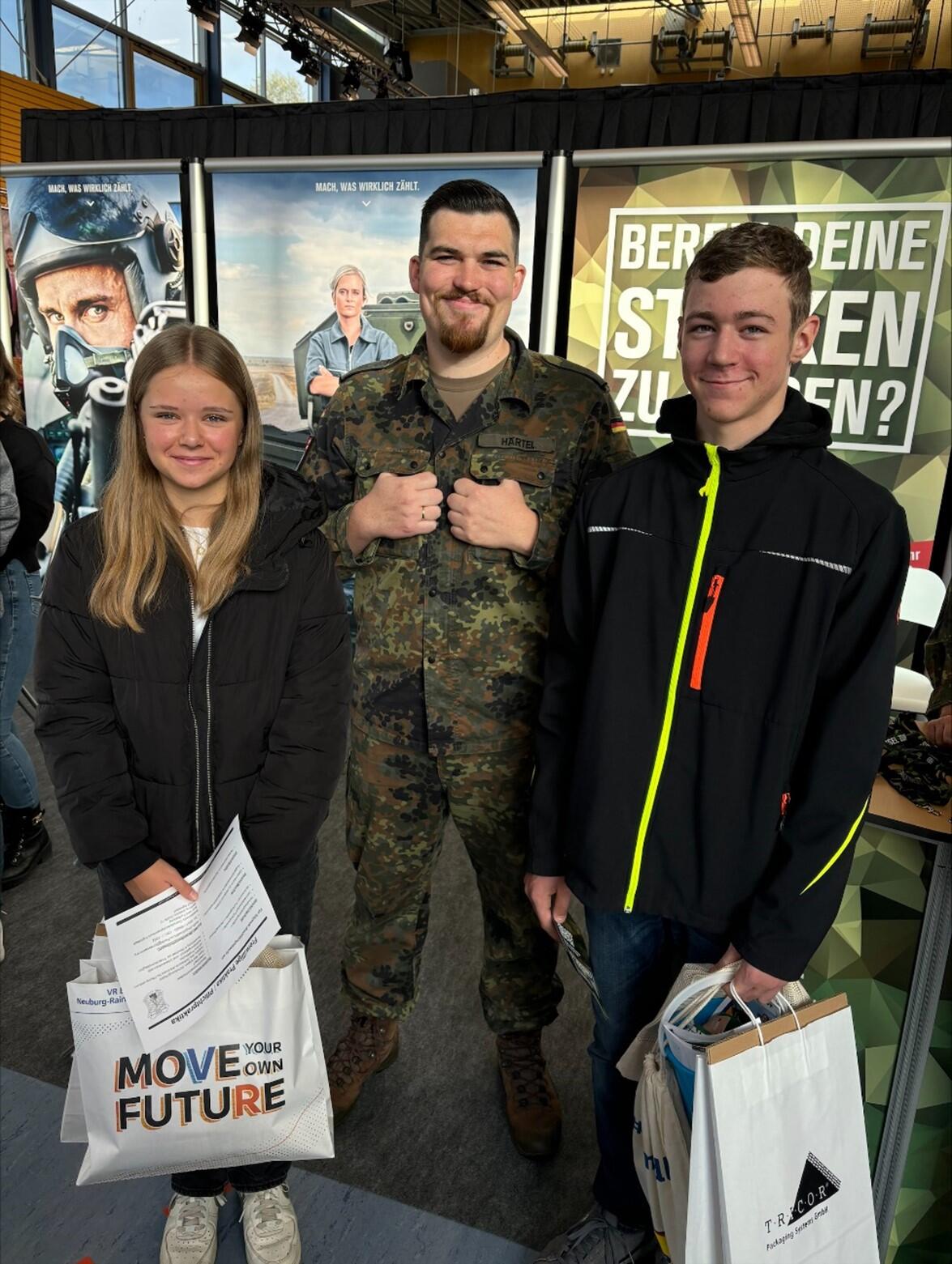 Am 12. Oktober 2024 ab 9 Uhr trafen sich dann schließlich alle Lehrkräfte und Klassen an der Parkhalle in Neuburg, um einen wichtigen Schritt in Richtung Traum-Ausbildungsberuf zu machen. Nachdem die erste Hürde überwunden war - nämlich am Samstagmorgen für eine Schulveranstaltung aufzustehen - gewannen unsere Schülerinnen und Schüler schnell Selbstvertrauen für die Gespräche. Viele der Aussteller zeigten großes Interesse daran, unsere Schülerinnen und Schüler im Hinblick auf ihre Ausbildungsmöglichkeiten zu informieren und versorgten diese auch mit ansprechenden Werbegeschenken. Neben Tipps und Fristen zur Bewerbung trafen einige Teilnehmerinnen und Teilnehmer die Ansprechpartner ihres kommenden Betriebspraktikums und konnten so einen persönlicheren Kontakt herstellen.