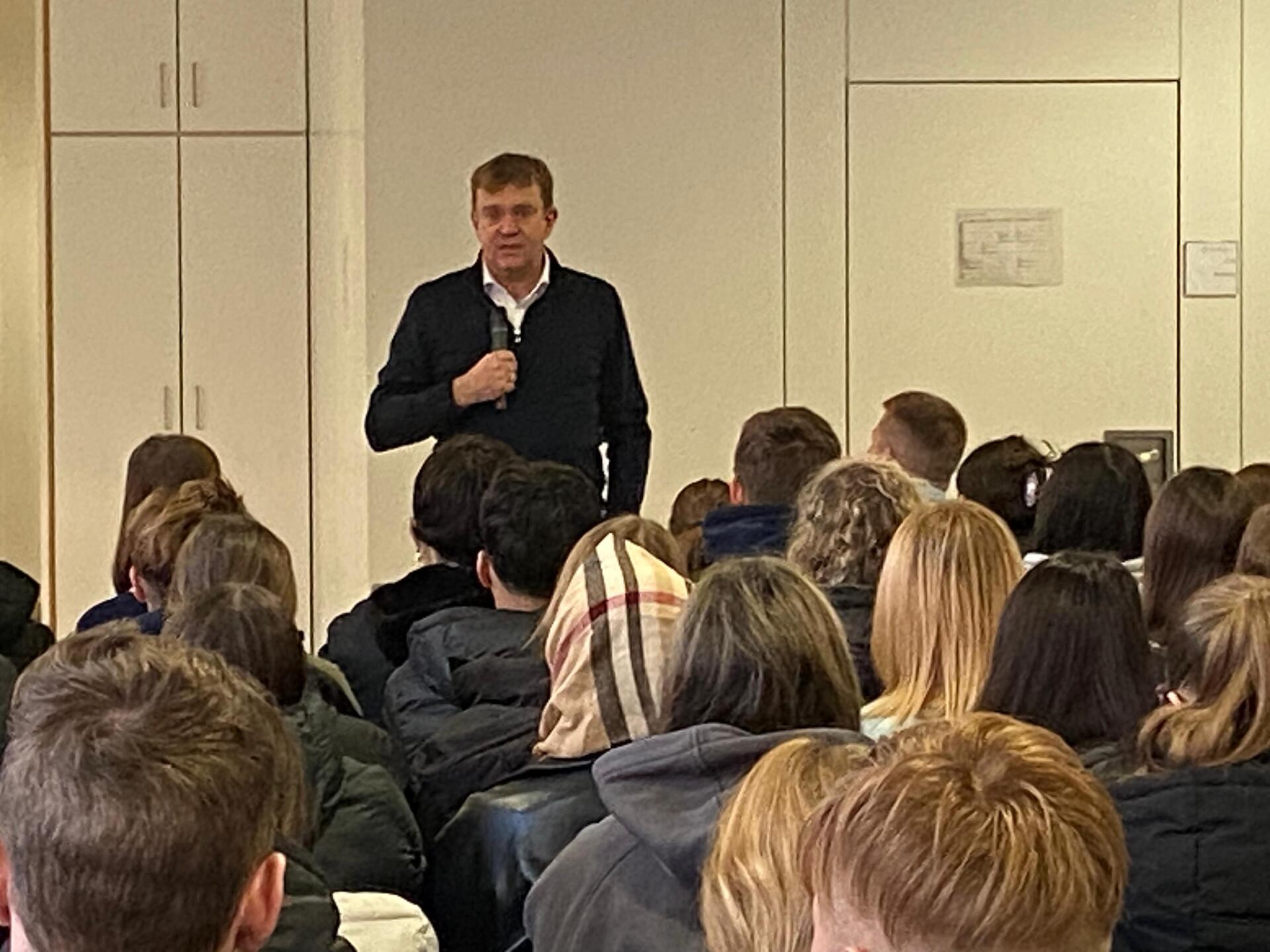 Im Rahmen des zweiten Teils unserer Abschlussfahrt durften die 10. Klassen Herrn Dr. Reinhard Brandl, Mitglied des Deutschen Bundestages, direkt an unserer Schule begrüßen. Da es während des Berlinaufenthalts terminlich nicht möglich war, Herrn Dr. Brandl im Bundestag persönlich zu treffen, wurde ein Nachtreffen an unserer Schule organisiert.