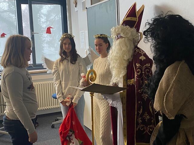 Heute besuchte der Nikolaus mit seinem Krampus und Engeln unsere Schule und sorgte in vielen Klassen für eine fröhliche Überraschung.