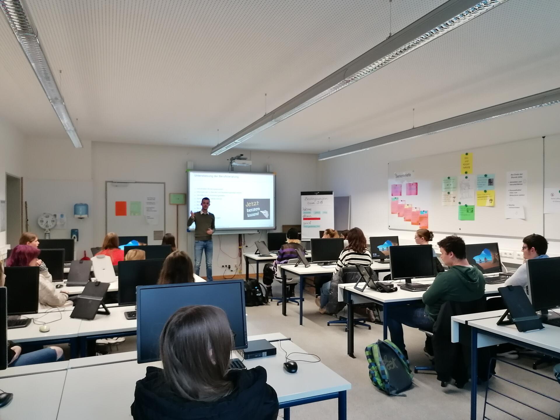 Aus diesem Grund haben die Berufsberater Herr Rafelt und Frau Fodorut nach den Ferien unseren Vorabschlussschüler:innen das digitale Informationsangebot der Bundesagentur für Arbeit nähergebracht. Während der zwei Unterrichtsstunden konnten die Schüler:innen „in Begleitung“ die verschiedenen Internetseiten wie z. B. Planet Beruf oder Berufe.TV erkunden und erfahren, wo sie welche Informationen finden können.