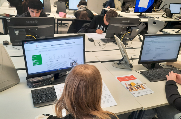 Innerhalb von zwei Unterrichtsstunden konnten die Jugendlichen verschiedene Online-Tools selbstständig erproben: Mit dem Berufswahltest „Check-U“ gewannen sie wertvolle Erkenntnisse über ihre individuellen Stärken und Interessen. Über „BerufeTV“ erhielten sie anschauliche Einblicke in unterschiedliche Berufsfelder, während „BERUFENET“ detaillierte Informationen zu zahlreichen Ausbildungs- und Berufsbildern bereithielt.