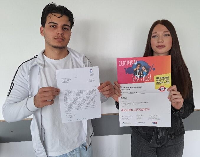 Große Freude an der Wirtschaftsschule Neuburg: Die Klasse 8a wurde für ihre herausragende Teilnahme an der bundesweiten Nichtraucherkampagne „Be Smart – Don’t Start“ für das Schuljahr 2024/2025 mit einem Kreativpreis ausgezeichnet.