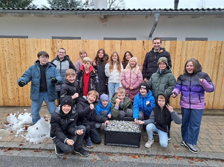 Das Ergebnis kann sich sehen lassen: Rund eine halbe Tonne, also etwa 250.000 Kronkorken, kamen zusammen. Innerhalb der Schule sorgte die interne Sammel-Challenge für zusätzliche Motivation. Die Klasse 5a setzte sich dabei mit großem Abstand durch und sammelte mit rund 300 Kilogramm die meisten Kronkorken. Ihr tatkräftiger Einsatz trug maßgeblich zum Erfolg der gesamten Aktion bei.